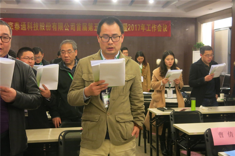 大會(huì)伊始,公司董事長(zhǎng)吉榮新作了題為《新規(guī)則、新思想、新起點(diǎn)、新泰通》的2017年工作報(bào)告,提出了“一個(gè)總體思路、五項(xiàng)主要目標(biāo)、十大重點(diǎn)工作”。報(bào)告從經(jīng)營(yíng)拓展、研發(fā)創(chuàng)新、管理提升、泰通家園等四個(gè)方面總結(jié)回顧了公司2016年取得的主要工作成績(jī),從經(jīng)營(yíng)目標(biāo)、服務(wù)目標(biāo)、研發(fā)目標(biāo)、建設(shè)目標(biāo)、管理目標(biāo)等5個(gè)維度指明了2017年的工作方向,從體系建設(shè)、戰(zhàn)略規(guī)劃、預(yù)算管理等10余方面周密部署了2017年度重點(diǎn)工作,為實(shí)際工作的開(kāi)展提供了有力的抓手,報(bào)告內(nèi)容全面、數(shù)據(jù)詳實(shí)、催人奮進(jìn),參會(huì)的全體代表倍感鼓舞!