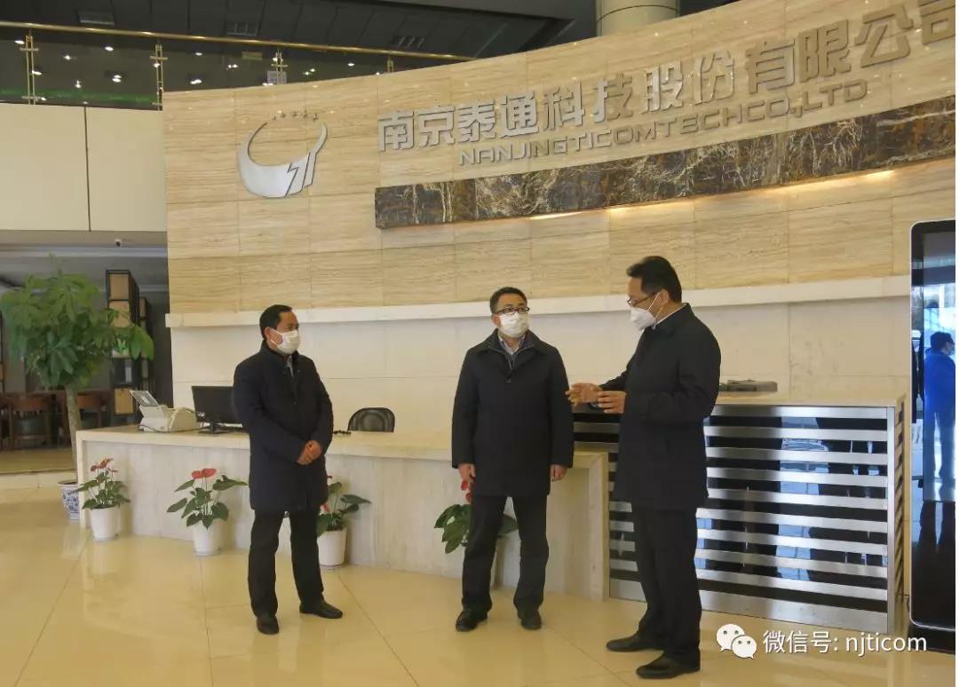2020年2月19日,南京市雨花臺區(qū)區(qū)長副書記張連春、副區(qū)長雨花經(jīng)濟(jì)開發(fā)區(qū)黨工委書記張建設(shè)、軟件谷管委會副主任卞艷艷一行至泰通指導(dǎo)疫情期間企業(yè)復(fù)工情況,泰通科技董事長吉榮新進(jìn)行了匯報。